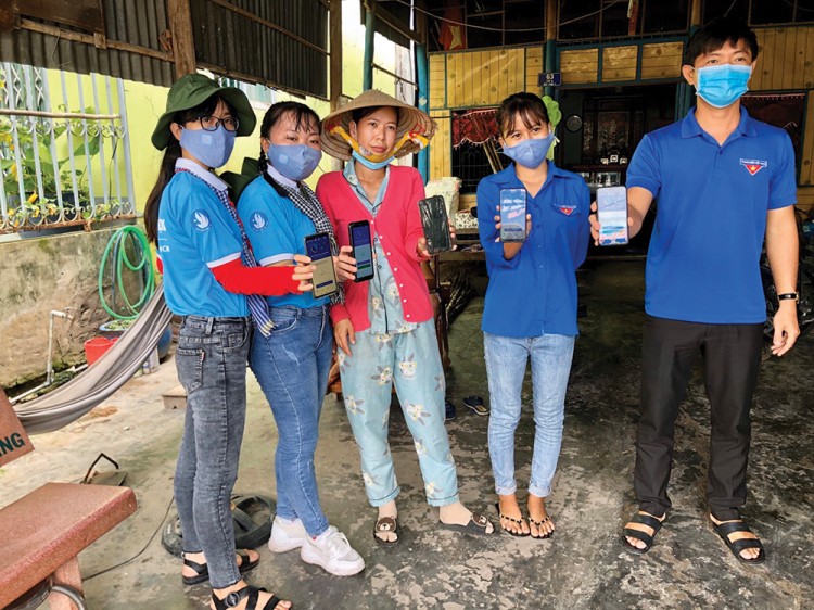 Với tinh thần “đi từng ngõ, gõ từng nhà”, các bạn đoàn viên, thanh niên (ĐVTN) trên địa bàn tỉnh đi đến từng nhà người dân, khu vực chợ, khu dân cư đông người để tuyên truyền công tác phòng, chống dịch bệnh COVID-19 và hướng dẫn cài đặt ứng dụng bluezone trên điện thoại thông minh để được cảnh báo nguy cơ lây nhiễm COVID-19 giúp bảo vệ bản thân, gia đình và cộng đồng.
