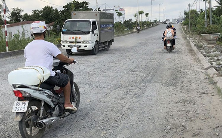 Hiện trường mặt đường Nguyễn Văn Cừ (đoạn từ xã Mỹ Khánh đến Thiền viện Trúc Lâm phương Nam) đã được giặm vá (ảnh chụp ngày 22-10-2020).