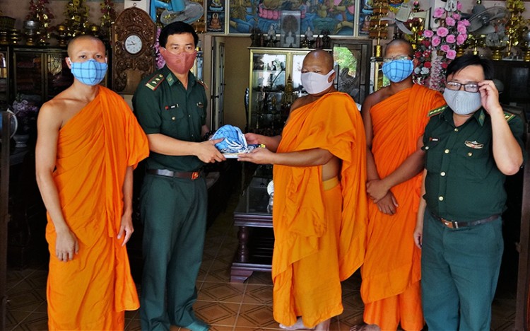 Ðồn Biên phòng Vĩnh Châu tặng khẩu trang cho các sư sãi trên địa bàn.