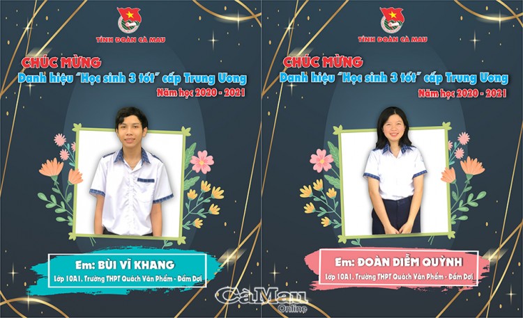 Đó là em Bùi Vĩ Khang và em Đoàn Diễm Quỳnh, học cùng lớp 10A1, Trường THPT Quách Văn Phẩm, huyện Đầm Dơi.