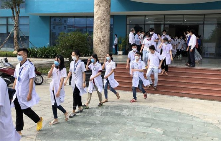 Các sinh viên lên đường tham gia hỗ trợ công tác tiêm ngừa vaccine phòng COVID-19 tại Sóc Trăng. Ảnh: TTXVN phát