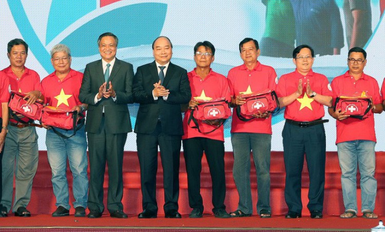 Trước đó, vào ngày 29-7, tại Hội nghị Xúc tiến đầu tư tỉnh Kiên Giang, Thủ tướng Chính phủ Nguyễn Xuân Phúc cùng Tổng Biên tập Báo Người Lao Động Tô Đình Tuân và Chủ tịch UBND tỉnh Kiên Giang Phạm Vũ Hồng đã trao cờ và túi thuốc y tế trên biển cho 12 ngư dân đại diện của tỉnh Kiên Giang.