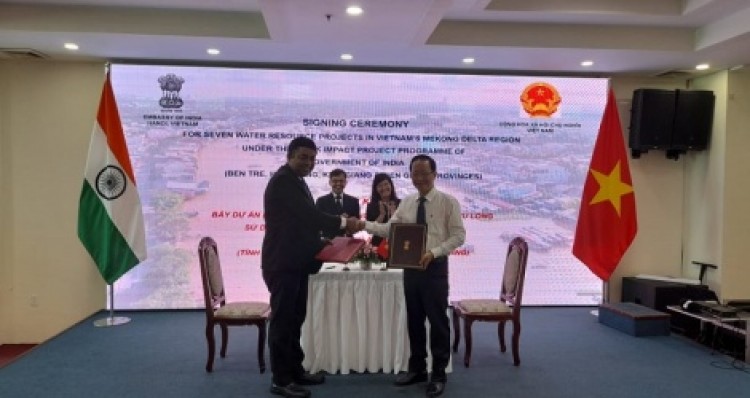 Đây là hoạt động nằm trong khuôn khổ chương trình viện trợ không hoàn lại của Dự án tác động nhanh (QIP) đang được Chính phủ Ấn Độ thực hiện trong khuôn khổ Hợp tác sông Mê Công - sông Hằng, hướng đến các lợi ích kinh tế - xã hội trực tiếp cho cộng đồng tại các khu vực còn gặp nhiều khó khăn. Tại buổi lễ, Tổng Lãnh sự Ấn Độ tại TP Hồ Chí Minh đã ký 7 biên bản ghi nhớ với đại diện 4 tỉnh nêu trên. Tổng kinh phí thực hiện 7 dự án là 350.000USD (mỗi dự án 50.000 USD). Trong đó, Bến Tre có 1 dự án (cống tưới tiêu Thới Định); Kiên Giang có 2 dự án (hỗ trợ dụng cụ chứa nước cho 790 hộ dân khu vực biên giới hải đảo và thu nước mưa để cung cấp nước bền vững); Tiền Giang có 2 dự án (xây dựng hồ chứa nước mưa vùng khô hạn và lắp đặt đường ống dẫn nước sinh hoạt); Hậu Giang có 2 dự án (xây dựng mô hình thủy lợi và hỗ trợ cấp nước sạch cho nhân dân vùng hạn mặn).