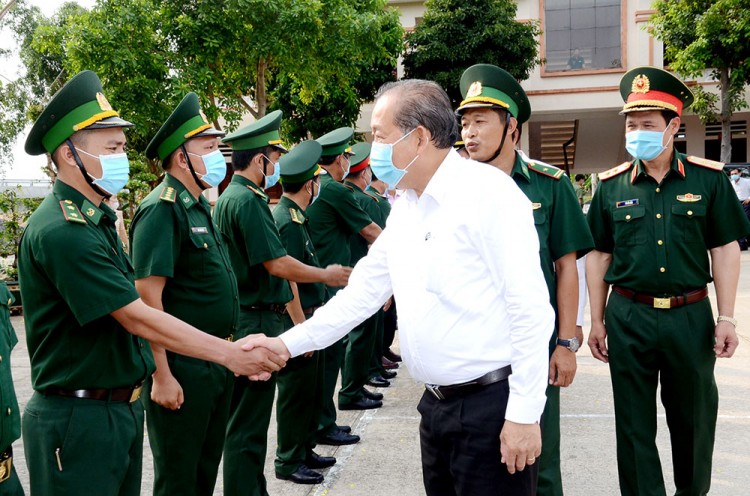 Phó Thủ tướng Thường trực Chính phủ Trương Hòa Bình kiểm tra công tác phòng, chống dịch bệnh COVID-19 tại Đồn Biên phòng Vĩnh Nguơn (TP. Châu Đốc)