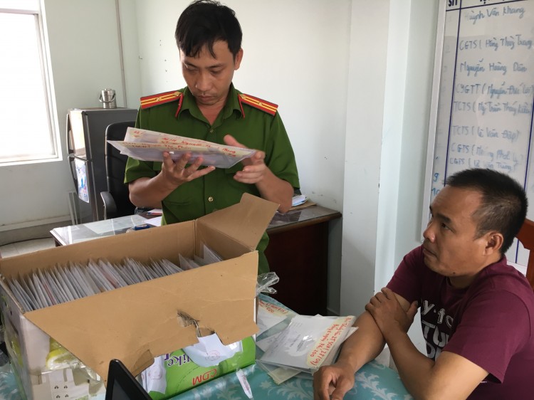 Căn hộ do Hoàng Thanh Tùng thuê có 9 nhân khẩu tạm trú. Qua kiểm tra hành chính, lực lượng làm nhiệm vụ phát hiện, thu giữ 104 hồ sơ tín dụng, các giấy tờ liên quan, như: hộ khẩu, chứng minh nhân dân, giấy khai sinh, giấy vay nợ..., cùng nhiều danh thiếp có nội dung: “Dịch vụ hỗ trợ tài chính K.P. Thủ tục đơn giản, giải ngân trong ngày, giới thiệu cũng có hoa hồng” cùng số điện thoại liên lạc. Mức vay từ 3 đến 10 triệu đồng, phí vay trên 200.000 đến 700.000 đồng/hợp đồng”.