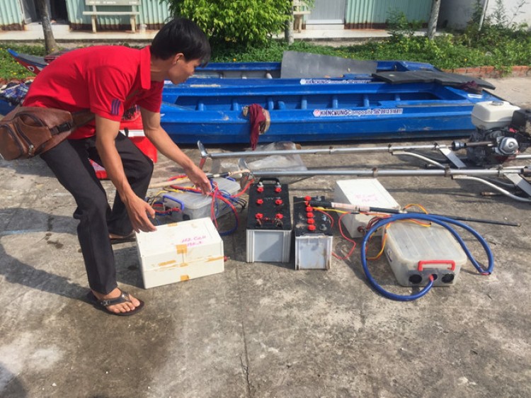 Tại cơ quan công an, hai nghi can khai nhận do không có nghề nghiệp ổn định nên khoảng 2 năm qua, họ bỏ tiền mua sắm vỏ lãi, máy nổ, bộ kích điện để đánh bắt tôm, cá ở các tuyến kênh, sông trên địa bàn tỉnh Bạc Liêu.