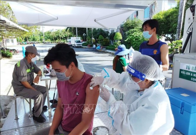 Lực lượng Y tế tiêm vaccine cho người dân trên địa bàn thành phố Bạc Liêu.