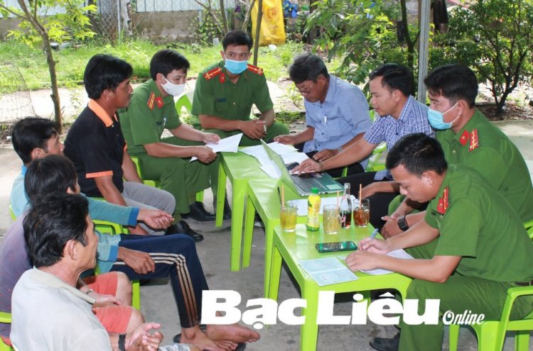 Công an huyện Hòa Bình thu thập thông tin công dân ấp Láng Giài (TT. Hòa Bình, huyện Hòa Bình). Ảnh: N.Q