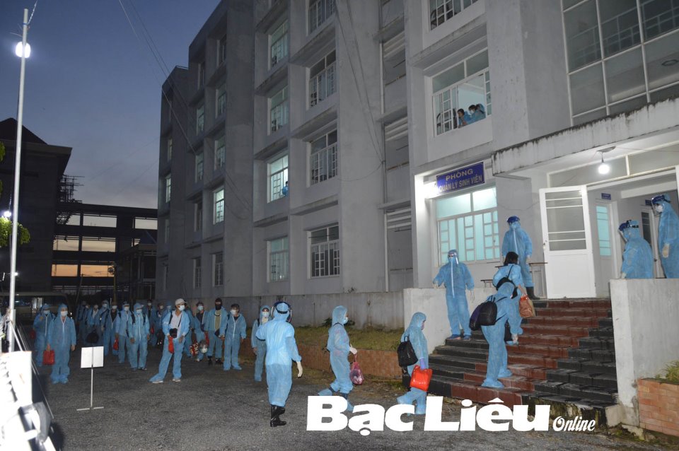 Tiếp nhận công dân về từ nước ngoài vào khu cách ly tập trung phòng bệnh COVID-19. Ảnh: C.K