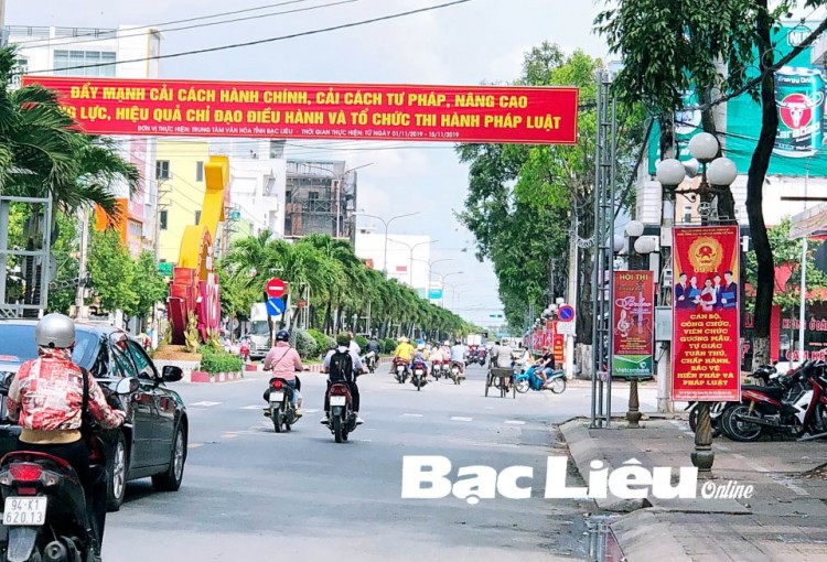 Băng-rôn tuyên truyền pháp luật trên đường Trần Phú (TP. Bạc Liêu). Ảnh: K.P