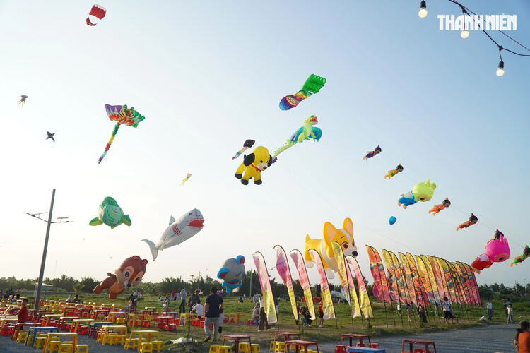 Tương tự, anh Trần Văn Tâm (39 tuổi, ngụ xã Châu Thành, Vĩnh Long) cho biết: "Nghe bạn bè nói ở đây có bãi thả diều chill lắm nên tôi đưa cả gia đình đi ra chơi. Ngồi uống nước, ngắm mấy con diều đủ hình dạng mấy đứa nhỏ rất thích, còn được ngắm hoàng hôn nữa. Đẹp thiệt", anh Tâm chia sẻ.