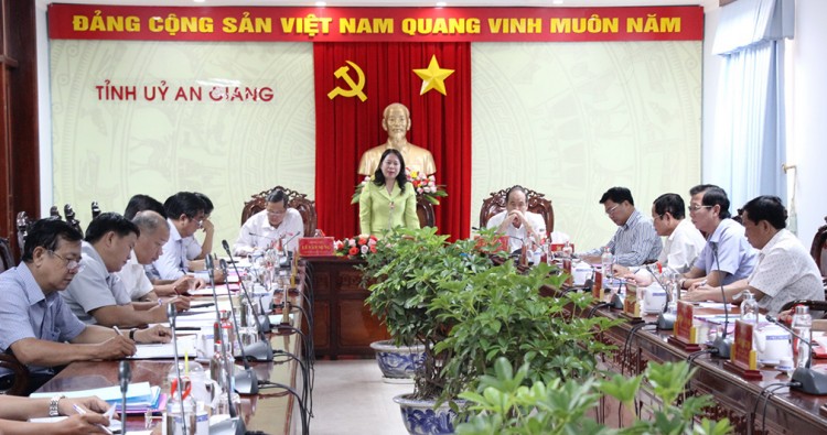 Đồng chí Võ Thị Ánh Xuân, Ủy viên Trung ương Đảng, Phó Chủ tịch nước, Bí thư Tỉnh ủy An Giang, Phó Chủ tịch Hội đồng Bầu cử quốc gia, Trưởng ban Chỉ đạo Bầu cử tỉnh An Giang phát biểu chỉ đạo cuộc họp