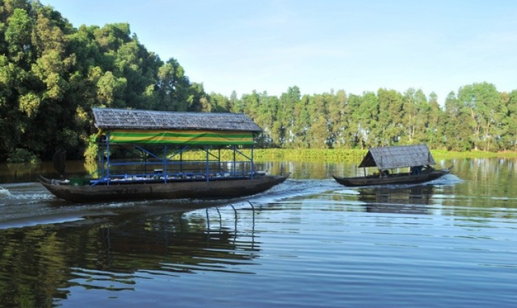 Cuộc sống dân dã của người dân tại cánh đồng lúa ma ở Vườn Quốc gia Tràm Chim, Đồng Tháp. Hàng ngày họ sống trên những chiếc ghe như thế này rồi đợi tối đi thu hoạch lúa ma. Ảnh: dantri.com.vn