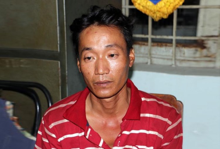 Đối tượng Cao Văn Vũ tại trụ sở công an.