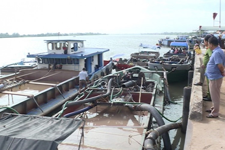 Rạng sáng 10-4, Công an H.Mang Thít (Vĩnh Long) phối hợp lực lượng chức năng tiến hành kiểm tra các phương tiện đang khai thác cát trên sông Cổ Chiên, đoạn thuộc địa phận 2 xã An Phước và Chánh An, phát hiện 5 sà lan có tải trọng từ 30 - 200 tấn không xuất trình được giấy tờ hợp pháp, trong đó có 4 chiếc không mang số hiệu.