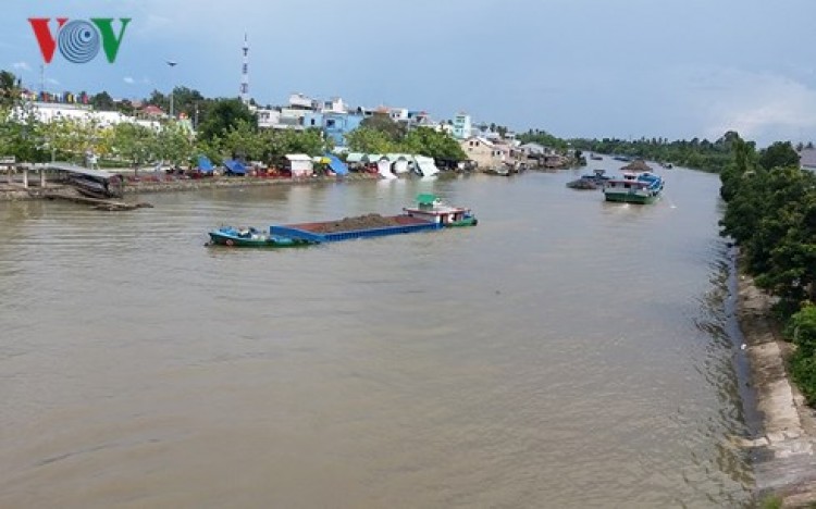 Kênh Chợ Lách, tỉnh Bến Tre mỗi ngày có hàng chục tàu cát chưa rõ nguồn gốc qua lại. ( Ảnh: Nhật Trường)