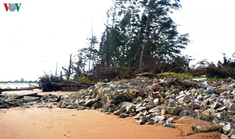 Bờ biển Cồn Bửng bị sạt lở nghiêm trọng.