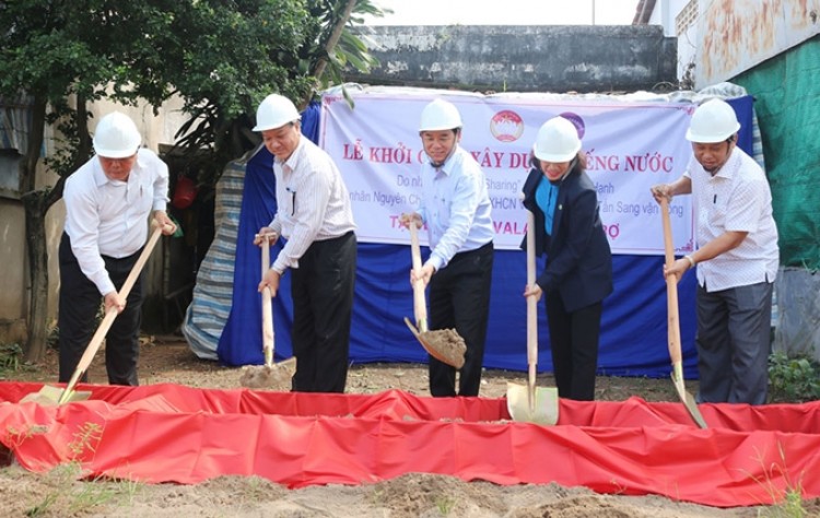 Lãnh đạo thực hiện nghi thức động thổ khởi công xây dựng giếng nước.