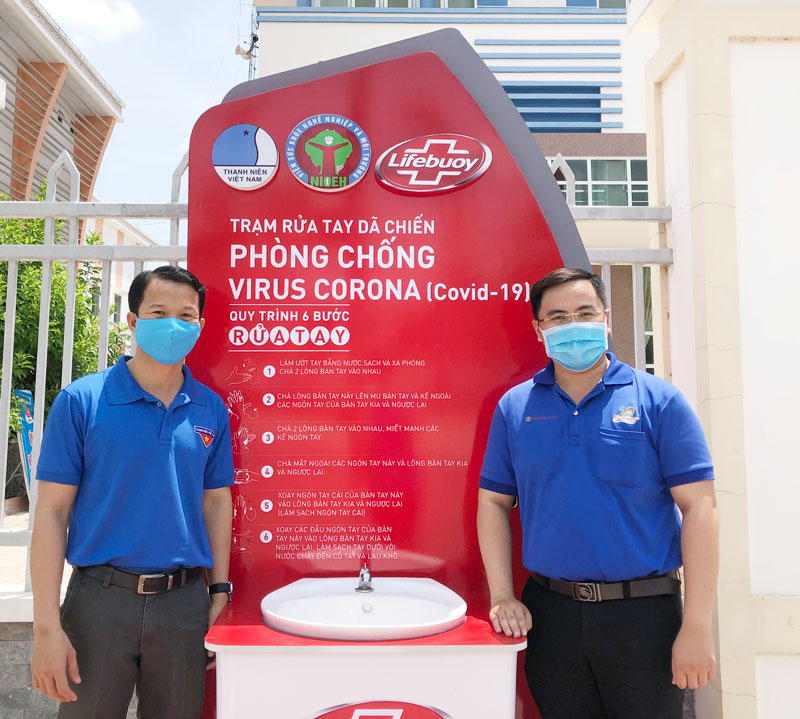 Sáng 10-4-2020, Hội Liên hiệp Thanh niên Việt Nam tỉnh phối hợp với Công ty Unilever Việt Nam (nhãn hàng Lifebuoy) lắp đặt trạm rửa tay dã chiến và tuyên truyền phòng chống dịch bệnh Covid-19 tại phía trước cơ quan Thành Đoàn - Hội Liên hiệp Thanh niên Việt Nam TP. Bến Tre (cạnh Quảng trường TP. Bến Tre).