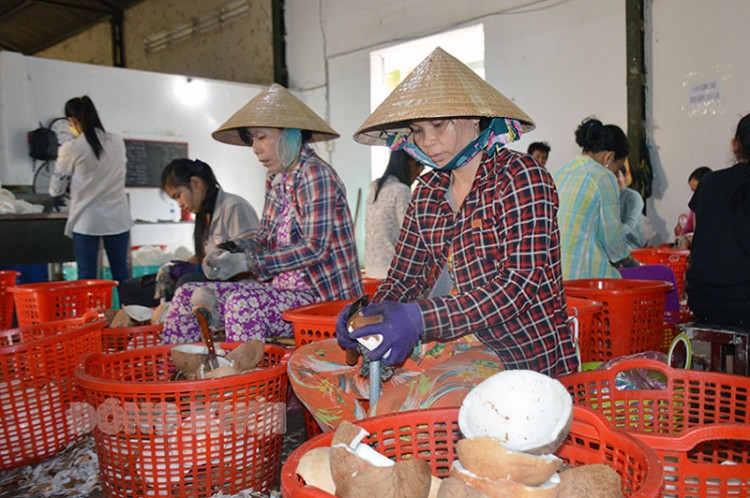 Các hợp tác xã thu gom và sơ chế dừa cho doanh nghiệp trong tỉnh. Ảnh: tư liệu