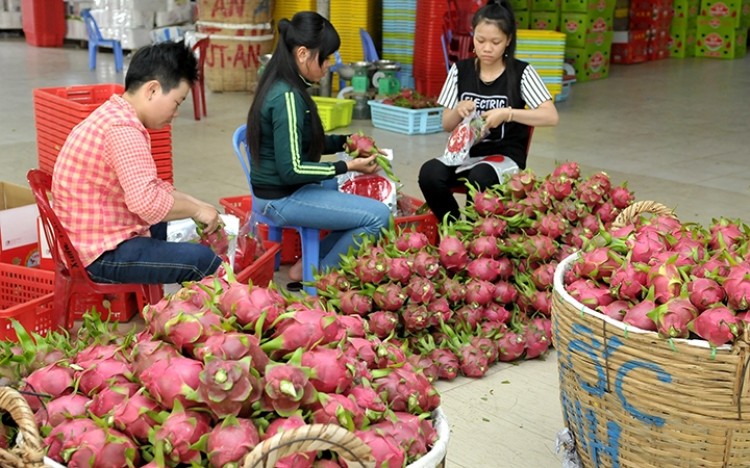 Người dân thị trấn Tầm Vu, huyện Châu Thành (Long An) đóng gói thanh long. Ảnh: NGUYỄN ĐĂNG