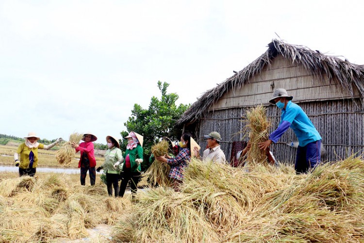 Thu hoạch lúa ở Hợp tác xã tôm - lúa Thạnh Phú. Ảnh: Viết Duyên