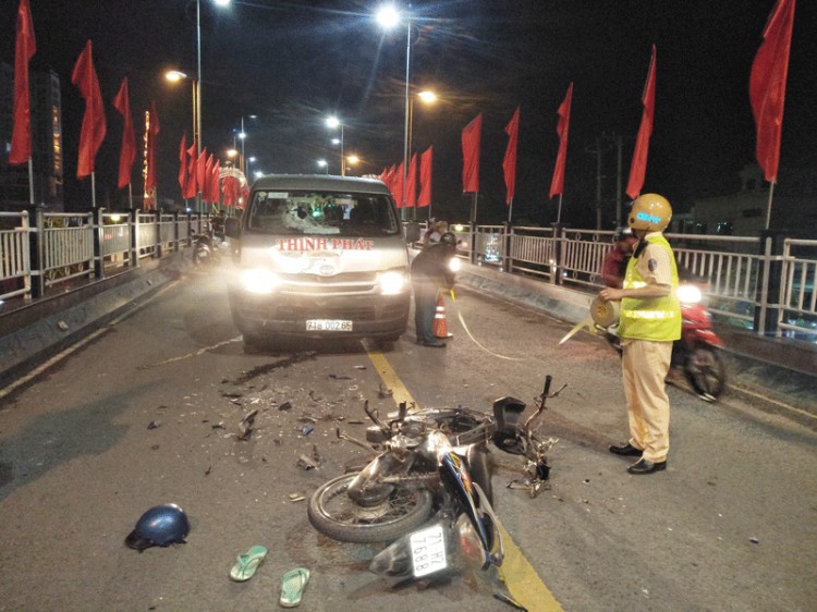 Khi đến chân cầu Bến Tre thì bất ngờ tông vào xe ô tô khách BKS: 71B - 00265 do tài xế Lê Thành Tâm, sinh năm 1992, ngụ xã Châu Hòa, huyện Giồng Trôm điều khiển đang lưu thông theo hướng ngược lại.