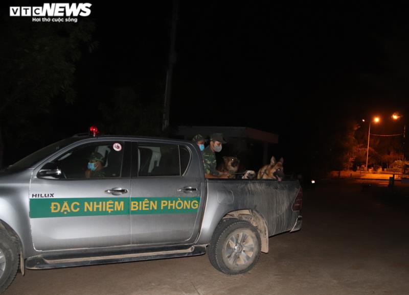 Lực lượng đặc nhiệm biên phòng dẫn theo chó nghiệp vụ liên tục tuần tra, kiểm soát dọc biên giới.