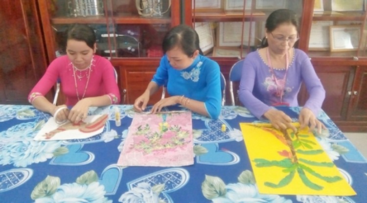 Giáo viên Trường Tiểu học Loan Mỹ B cùng nhau làm đồ dùng dạy và học từ vật phẩm tái chế.