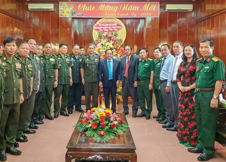Bộ Tư lệnh Lục quân- Quân đội Hoàng gia Campuchia chúc Tết và chụp hình lưu niệm cùng lãnh đạo TP Cần Thơ.