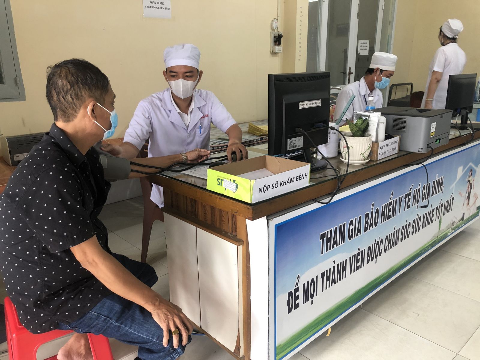 Đo huyết áp cho người dân tại trạm y tế phường Tân Hưng, quận Thốt Nốt. Ảnh: H.HOA