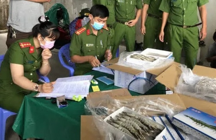Trước đó, khoảng 23 giờ 45 ngày 11-6, Phòng Cảnh sát Kinh tế kết hợp cùng các đơn vị có liên quan đã dừng phương tiện và tiến hành kiểm tra chiếc xe container (biển kiểm soát 63H.007.85) đang vận chuyển số lượng lớn tôm sú được đóng gói thành phẩm có dấu hiệu nghi vấn.