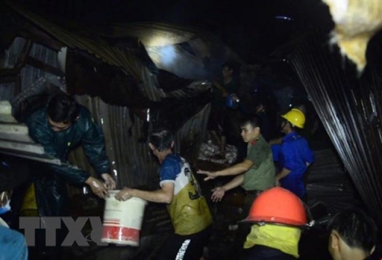 Lực lượng chữa cháy và người dân khắc phục hậu quả một vụ cháy. Ảnh minh họa. (Ảnh:TTXVN)