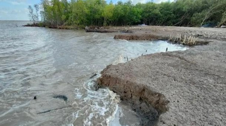 Xói lở nguy hiểm tại bờ biển Đông (thị trấn Rạch Gốc, huyện Ngọc Hiển).
