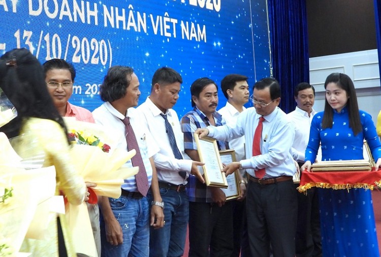 Lãnh đạo tỉnh Cà Mau tặng hoa, Bằng khen vinh doanh các doanh nhân tiêu biểu.