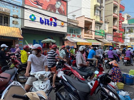 Tại quầy bán hải sản, các quán trà sữa trên đường Trưng Nữ Vương (Phường 1- TP Vĩnh Long) mỗi chiều đều rất đông khách. Vậy là quên mất quy định 2m, nhiều người vẫn đứng san sát nhau. Tương tự tại 2 tiệm bánh ngọt lớn trên đường Nguyễn Huệ (Phường 2- TP Vĩnh Long), lượng khách cũng thường xuyên đông và mọi người dường như chỉ mong muốn mua xong để về nên không để ý đến chuyện giãn cách xã hội.