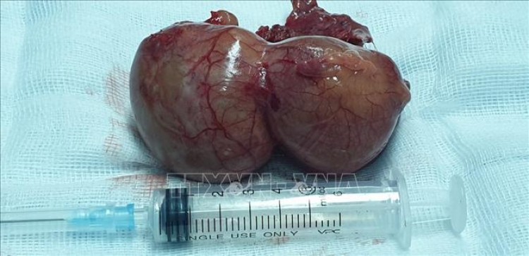 Nang màng ngoài tim đã được phẫu thuật cắt bỏ. Ảnh: TTXVN phát