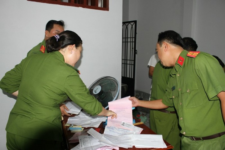Lực lượng công an thu giữ nhiều tang vật liên quan đến hoạt động cho vay nặng lãi tại đây