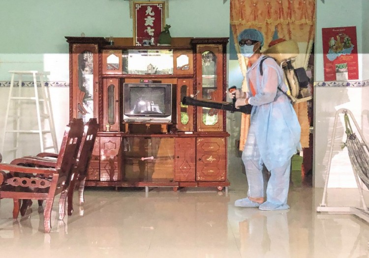 Phun thuốc tại nhà người dân ở phường Thới An, quận Ô Môn.