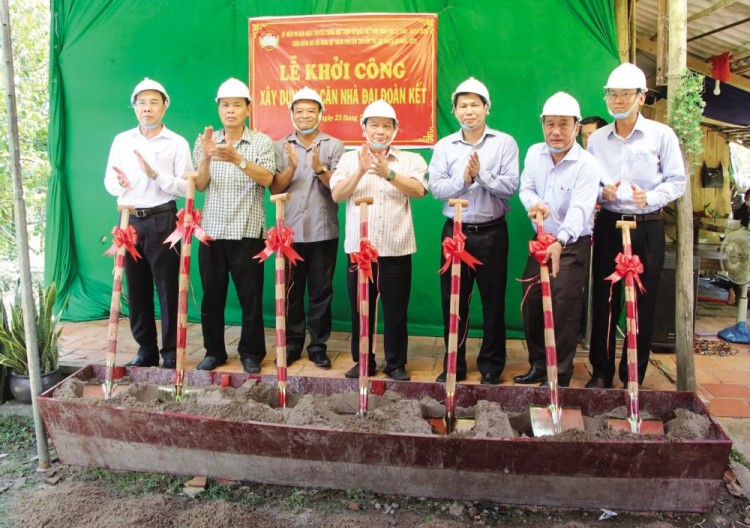 Các đồng chí lãnh đạo thành phố thực hiện nghi thức khởi công xây dựng nhà Đại đoàn kết.
