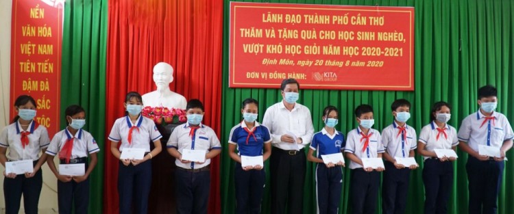 Đồng chí Phạm Văn Hiểu, Phó Bí thư Thường trực Thành ủy, Chủ tịch HĐND TP Cần Thơ, trao học bổng cho các em học sinh.