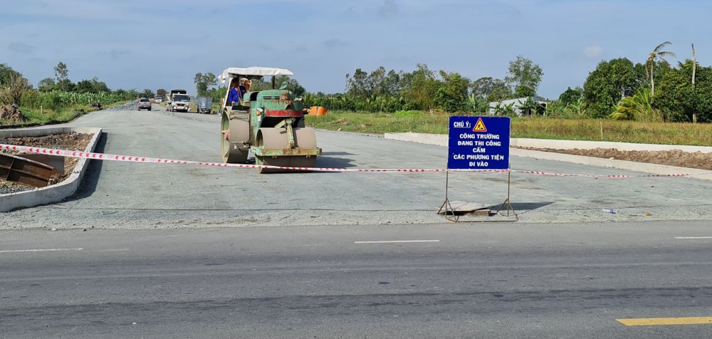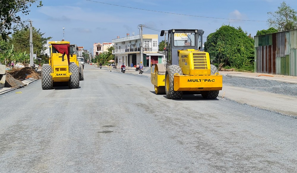 Ban Quản lý Dự án đầu tư xây dựng TP Cần Thơ và các nhà thầu đang “siết” tiến độ công trình đường tỉnh 922 có vốn đầu tư hơn 1.494,6 tỉ đồng, đến nay nhiều đoạn đã được thảm nhựa và phấn đấu đến cuối năm nay có thể thông xe. Trong ảnh: Thi công tại đầu tuyến đường tỉnh 922, địa phận quận Bình Thủy.