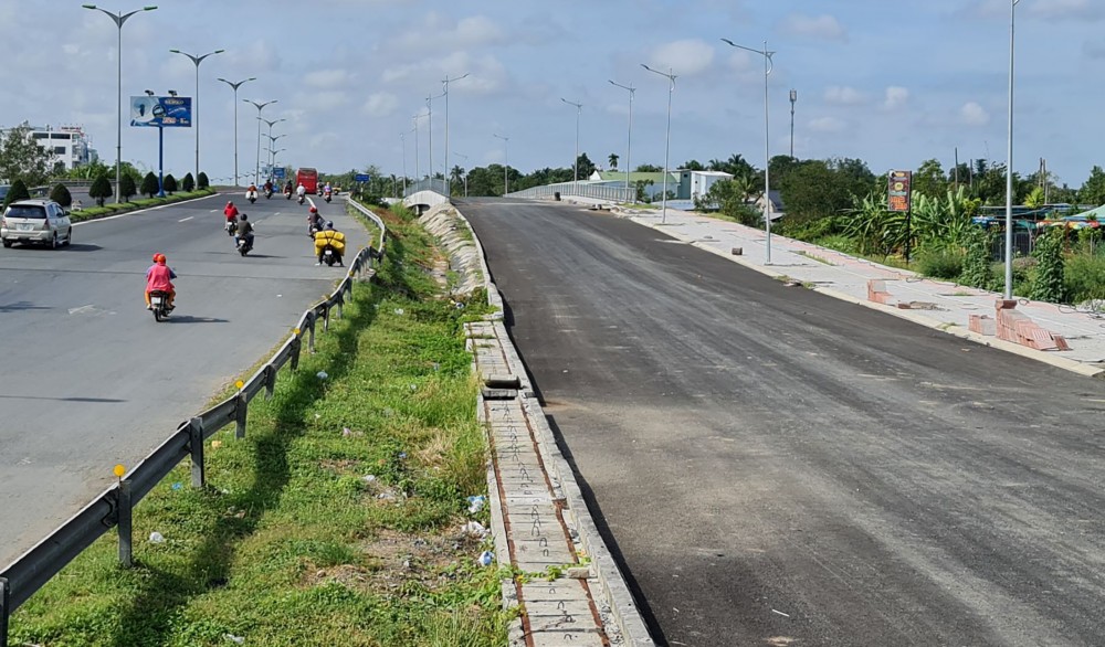 Công trình đường Trần Hoàng Na (đoạn song song quốc lộ 1A đến nút giao IC3) đã thảm nhựa mặt đường.