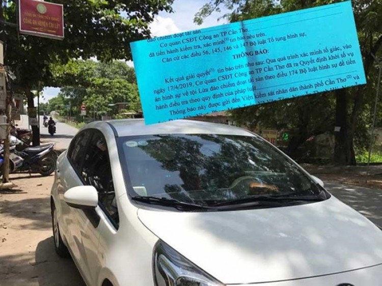 Một ô tô được Công an TP Cần Thơ thu hồi và thông báo khởi tố vụ án của Công an TP Cần Thơ (ảnh nhỏ). Ảnh: NG