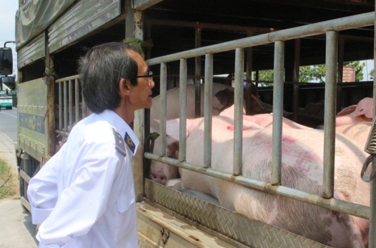 Lực lượng chức năng kiểm tra phương tiện vận chuyển lợn qua địa bàn Cần Thơ.