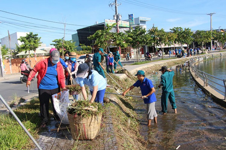 Các lực lượng tham gia tổng vệ sinh khu vực Hồ Búng Xáng.