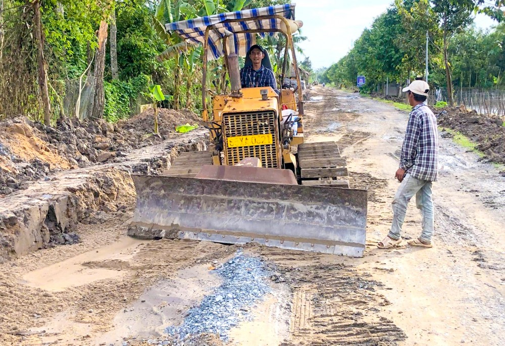 Công nhân đang thi công công trình nâng cấp, mở rộng lộ hậu Tân Thạnh Tây (đoạn khu vực 4, phường Ba Láng).