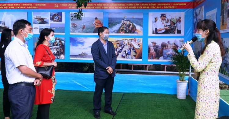Lãnh đạo Sở Văn hóa, Thể thao và Du lịch tham quan triển lãm ảnh “Tổ quốc nhìn từ biển” trong ngày đầu tiên phục vụ.