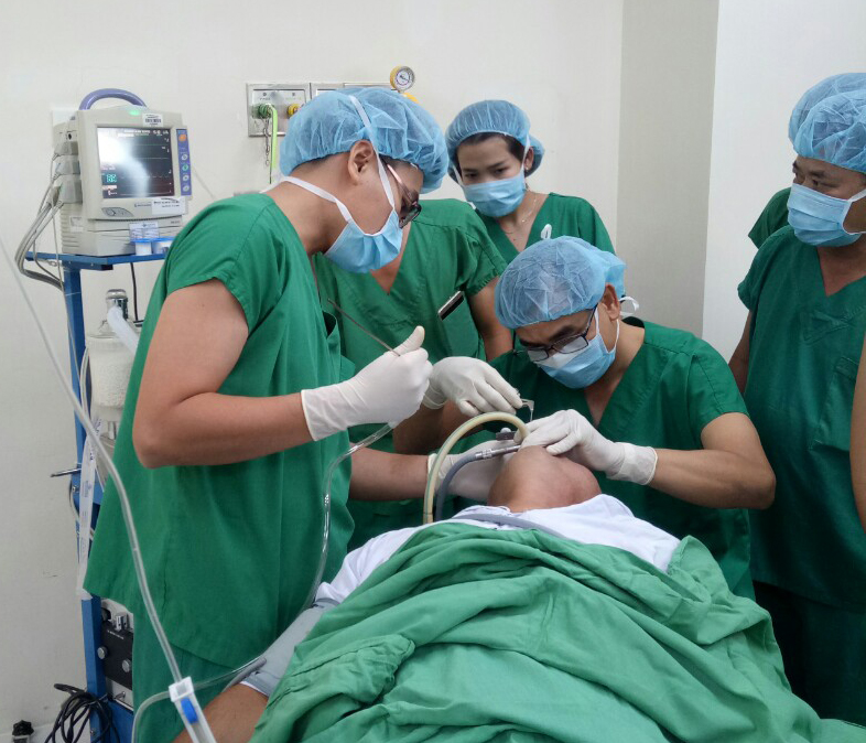 Bác sĩ BV Đa khoa Hoàn Mỹ Cửu Long xác định đây là trường hợp dị vật phức tạp với kích thước lớn, phối hợp với BV Tai Mũi họng TP Cần Thơ hội chẩn liên viện, tiến hành gây mê, nội soi gắp dị vật. Trong lúc soi, phẫu thuật viên quan sát thấy có dị vật nằm ở khí quản che gần hết phế quản gốc trái bao phủ bởi đàm nhầy, hình thành mô hạt xung quanh dị vật. Sau hơn 1 giờ thực hiện nội soi, ê kíp đã lấy ra một vỏ thuốc bằng nhựa cứng phủ nhôm còn nguyên vẹn trong khí quản bệnh nhân.