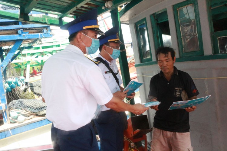 Tại 4 xã, thị trấn của huyện Châu Thành, BTL Vùng Cảnh sát biển 4 đã tuyên truyền, phổ biến các văn bản pháp luật về biển, đảo, nhất là về chống khai thác hải sản bất hợp pháp, không báo cáo, không theo quy định (IUU) và Luật Cảnh sát biển Việt Nam.